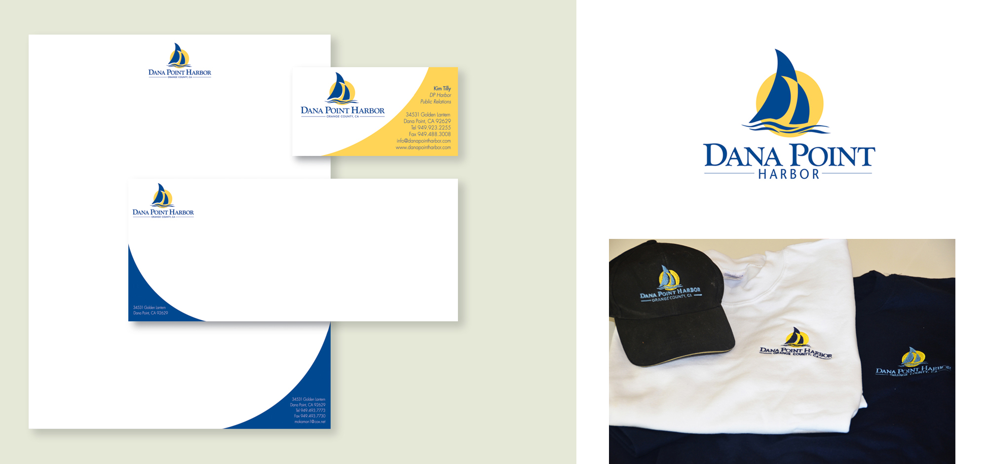 Logo, stationery and collateral for Dana Point Harbor located in Orange County, California.
