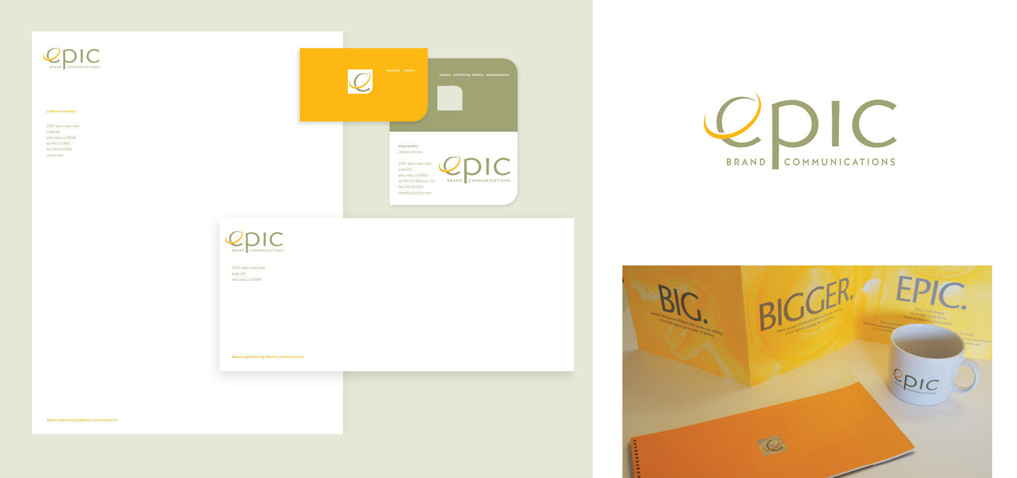 Logo mark and stationery for a global marketing agency that provides solutions to corporate healthcare and medical device companies. Agency: Epic Brand Communications