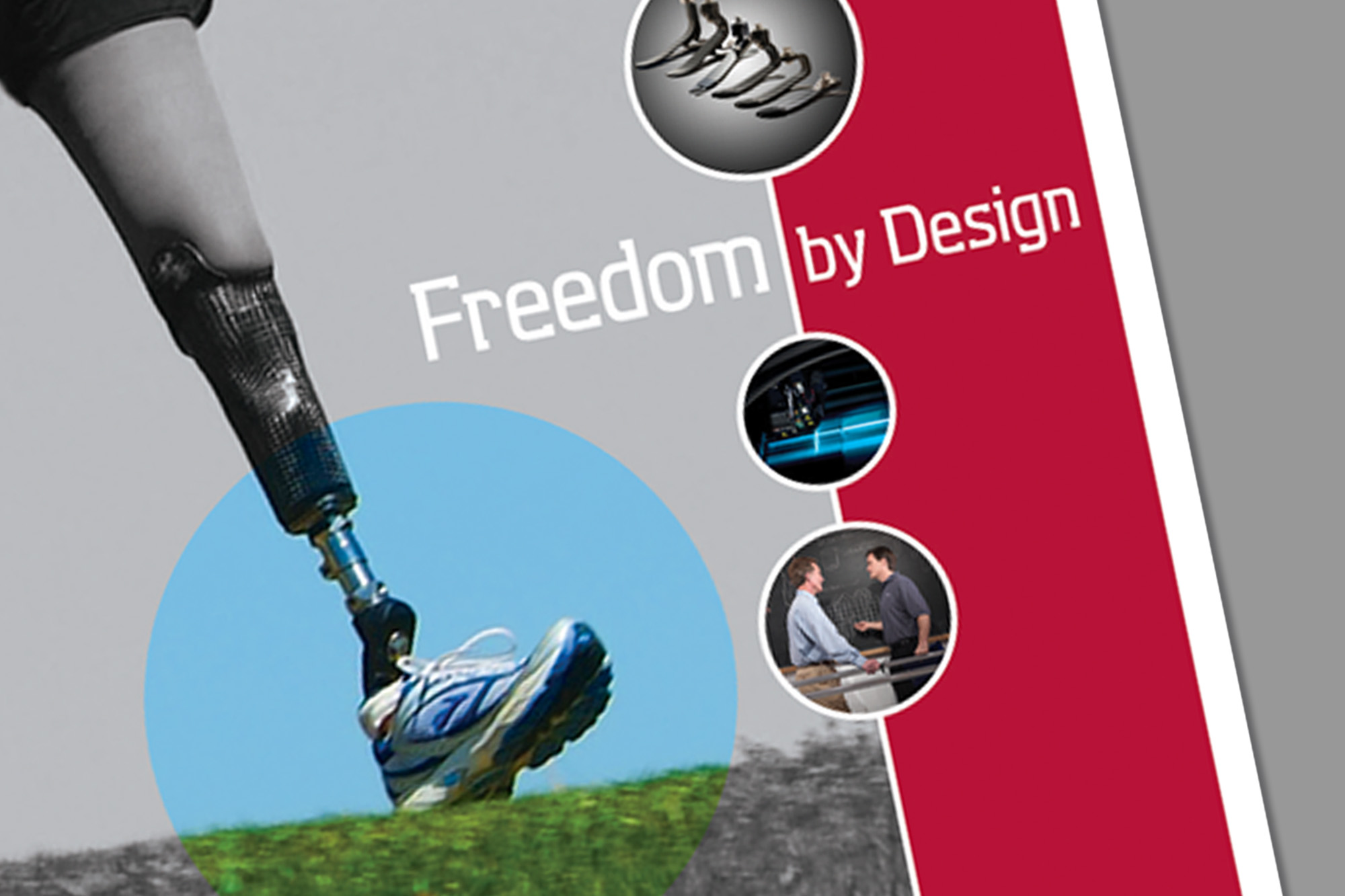 Patient product brochure for lower limb prosthetic solutions. Freedom Innovations develop world-class prosthetic feet and knees. Agency: Epic Brand Communications