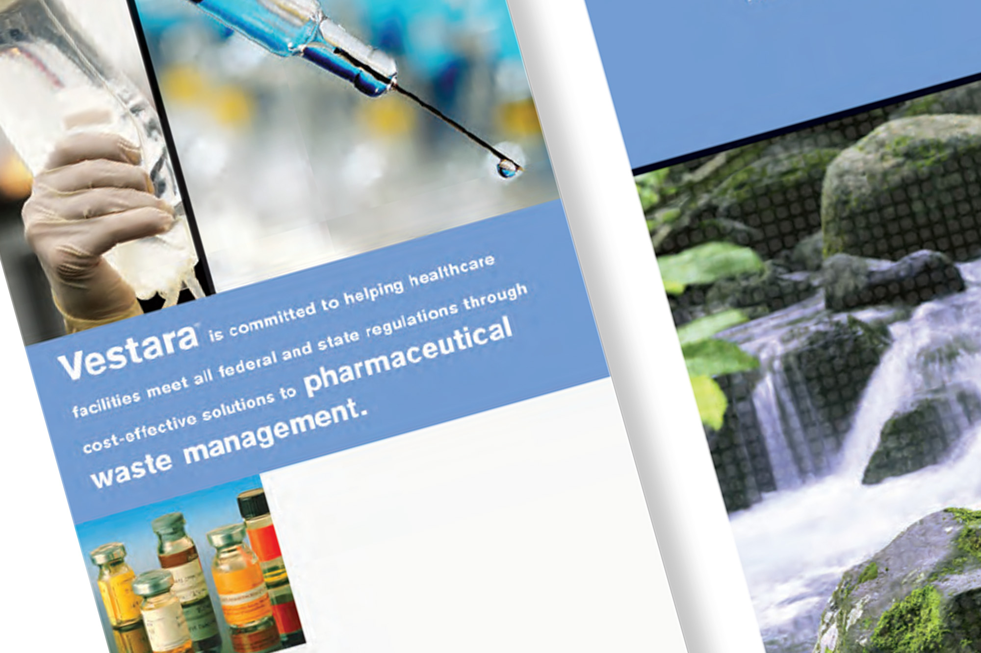 Three panel trade show graphic for the EcoRex pharmaceutical waste system. EcoRex is an eco-friendly system that identifies and sorts pharmaceutical waste into hazardous and lower-risk waste. Agency: Epic Brand Communications